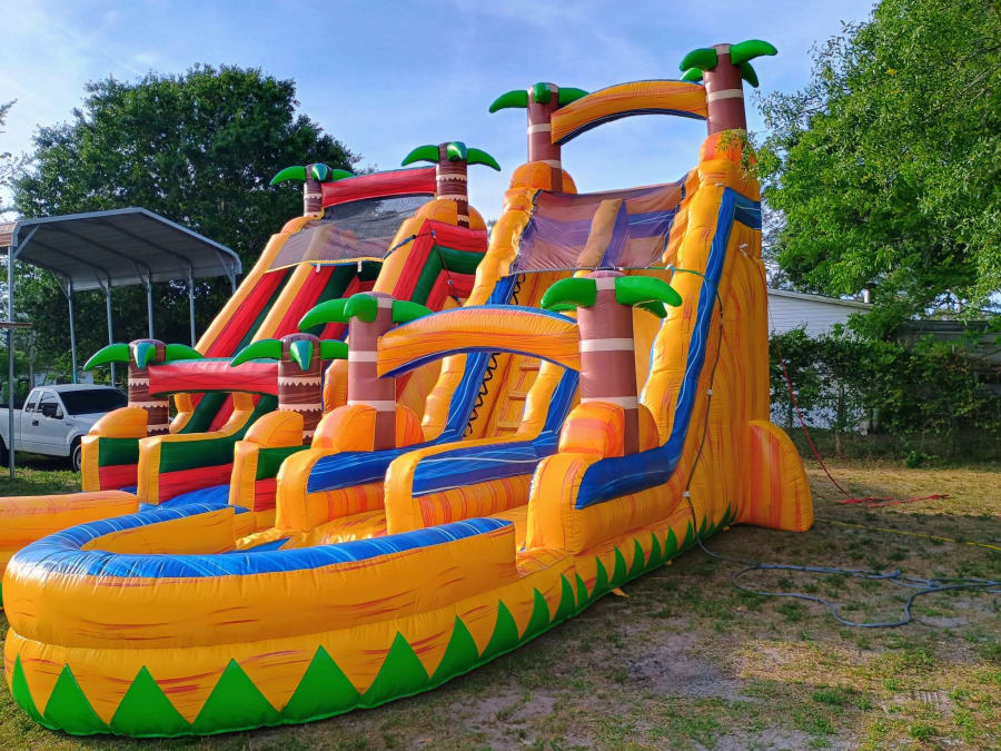At our company, we make party planning easy by offering reliable 20ft Tropical Water Slide rental in Saint Cloud, Kissimmee, Orlando and the surrounding areas. Our expert team handles everything—from timely delivery and professional setup to thorough breakdown and removal—so you can focus on enjoying your event.